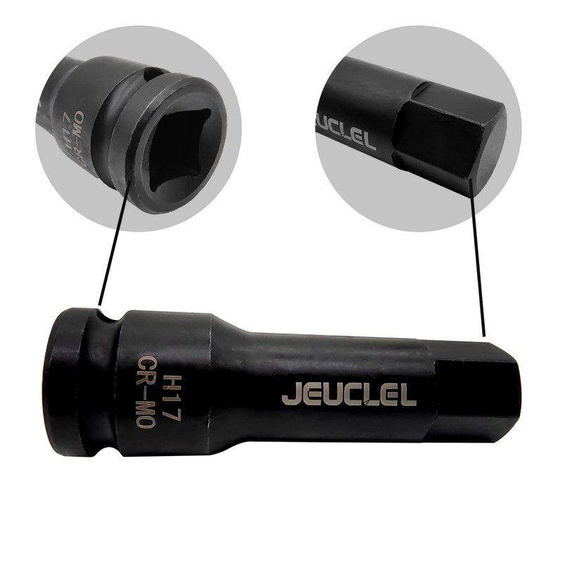 JEUCLEL 17mm Hex Impact Bit Socket, H17 1/2-Inch Impact Drive Allen Socket, Cr-Mo Steel Lengthen Hex Screwdriver Socket Adapter