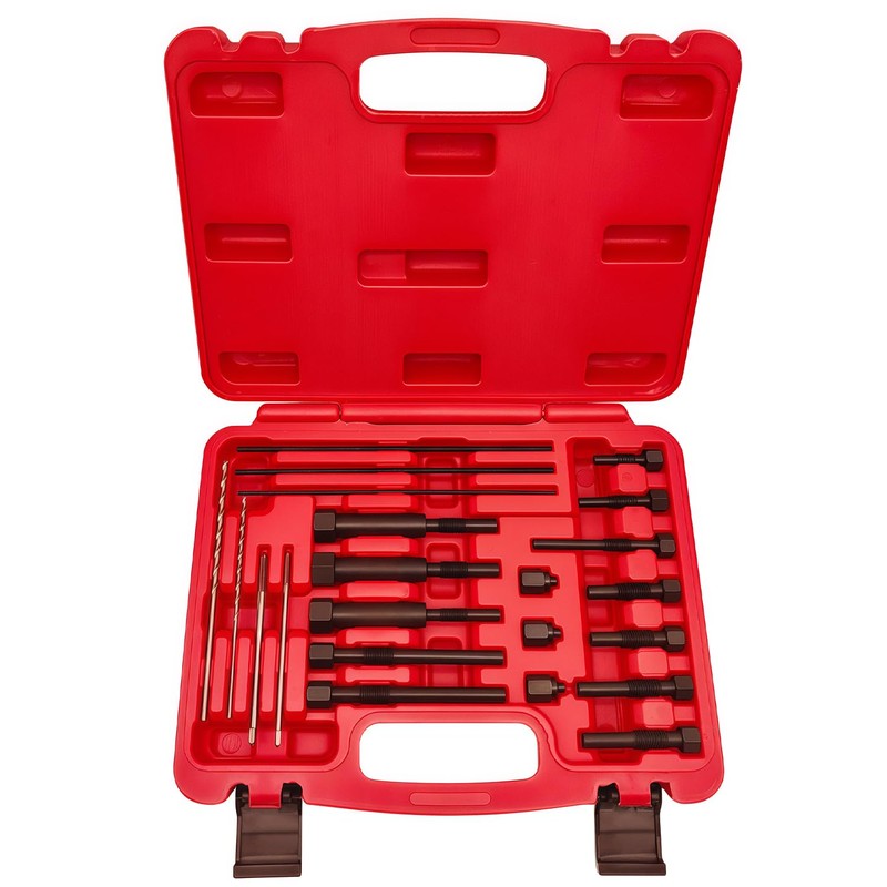 - Pre-Glow Plug Removal: Specifically designed for removing damaged glow plug electrodes without the need to remove the cylinder head. The tool kit includes specialized adapters that drill or tap the damaged parts for easy removal.