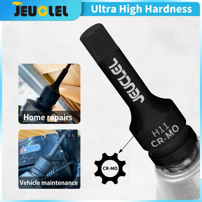 JEUCLEL 2Pcs 11mm Hex Impact Bit Socket, H11 1/2-Inch Impact Drive Allen Socket, Cr-Mo Steel Lengthen Hex Screwdriver Adapter for Electric Ratchet Wrenches Fastening Screws
