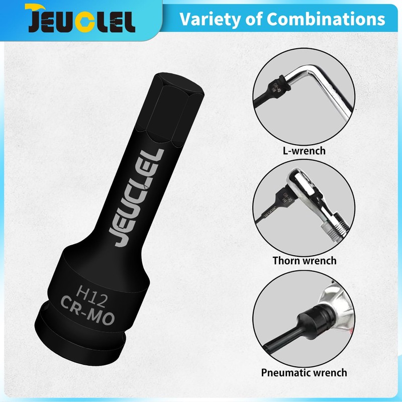 JEUCLEL 2Pcs 12mm Hex Impact Bit Socket, H12 1/2-Inch Impact Drive Allen Sock...