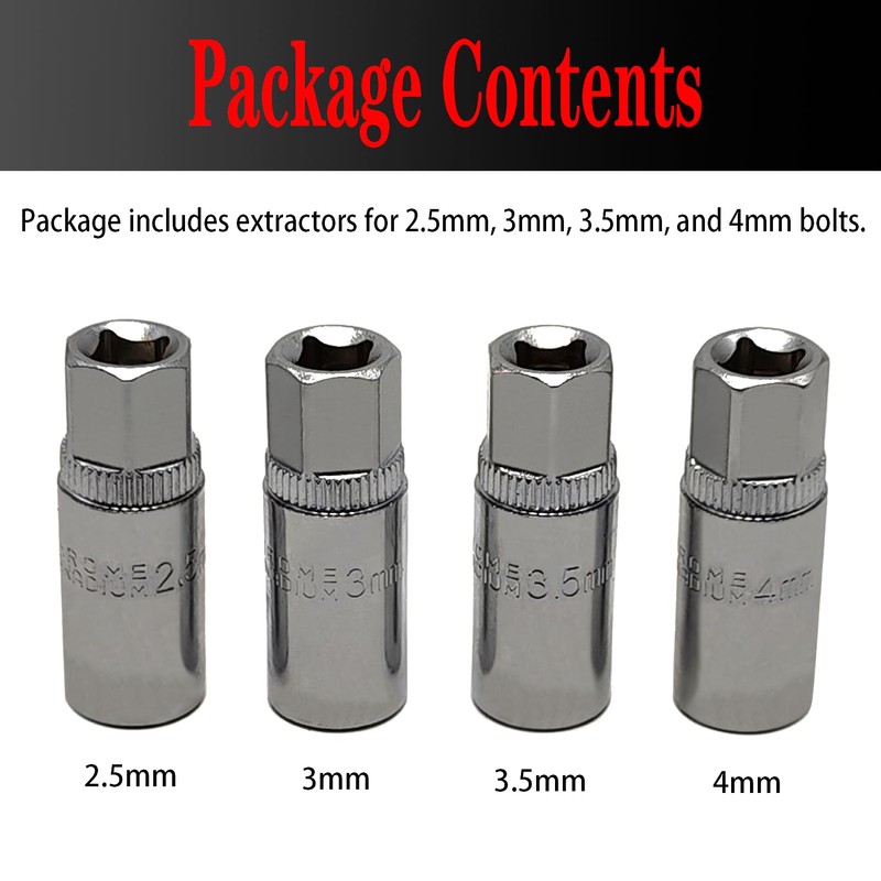 JEUCLEL 4pcs 1/4-in Stud Extractor Set - Broken Stud Removal Socket and Puller for Deeply Trapped Bolts