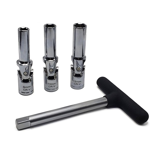 - 【Complete Tool Set】3/8 inch drive T-Bar, and a versatile universal joint (8mm, 10mm, 12mm)