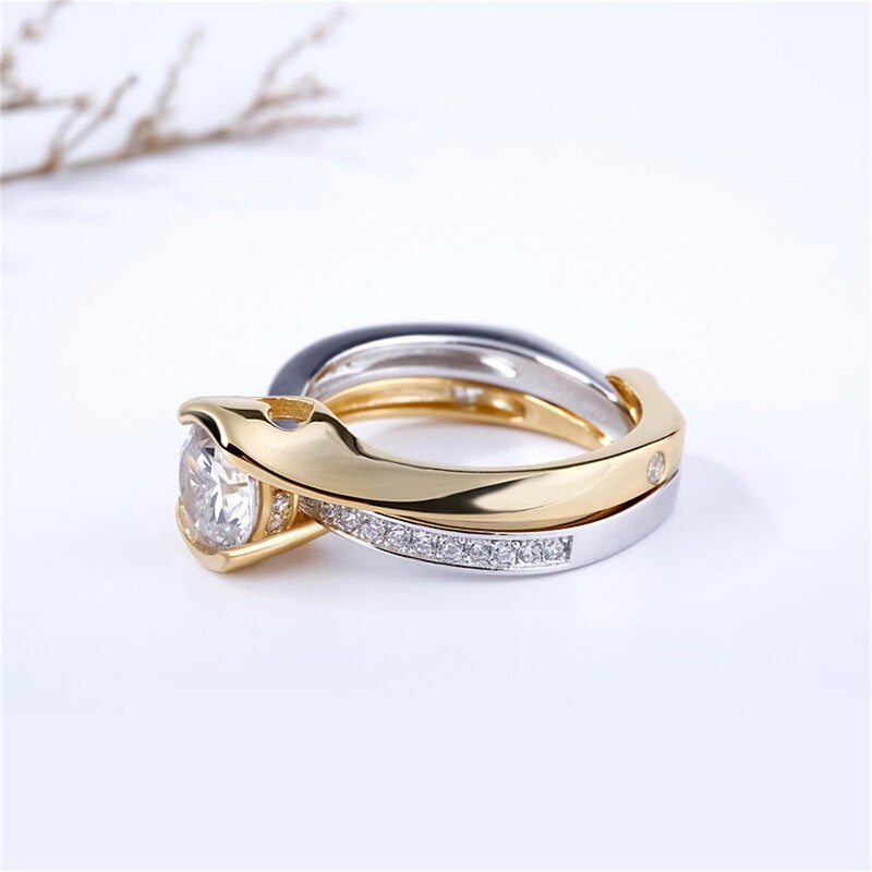 JEULIA 2.5 Carat Asymmetric Rings Women Round Cut Diamond Ring Set 14k Gold Plated Cubic Zirconia Engagement Rings Anniversary Promise Romantic Jewelry Gift (8.5)