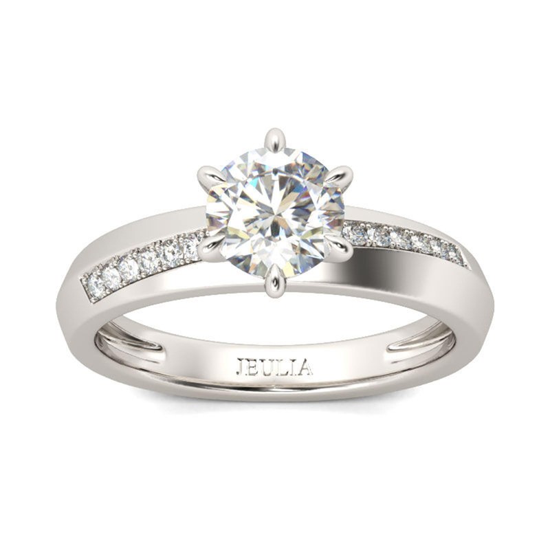 - DESIGN INSPIRATION: A traditional design, this stunning engagement ring is the perfect choice for that most special day. Created in 925 sterling silver, the eye is drawn to the 7mm round center stone. Classic six-prong surrounds the center stone, while the paved polished shank completes the design. A brilliant beginning to your romantic love story, this ring sparkles brilliantly from every angle.