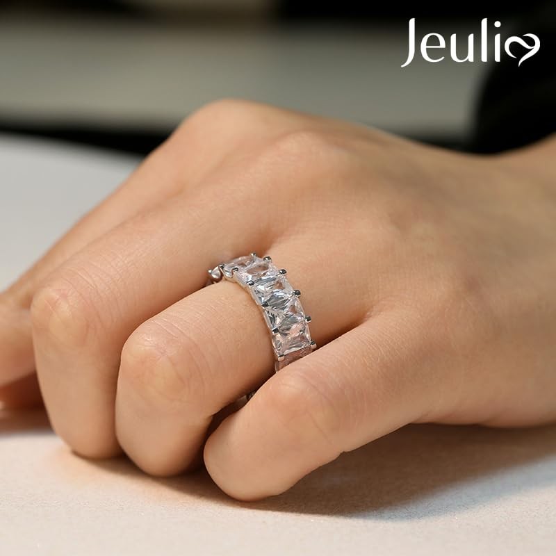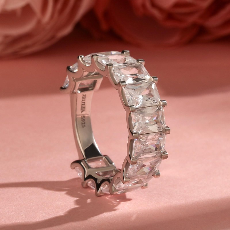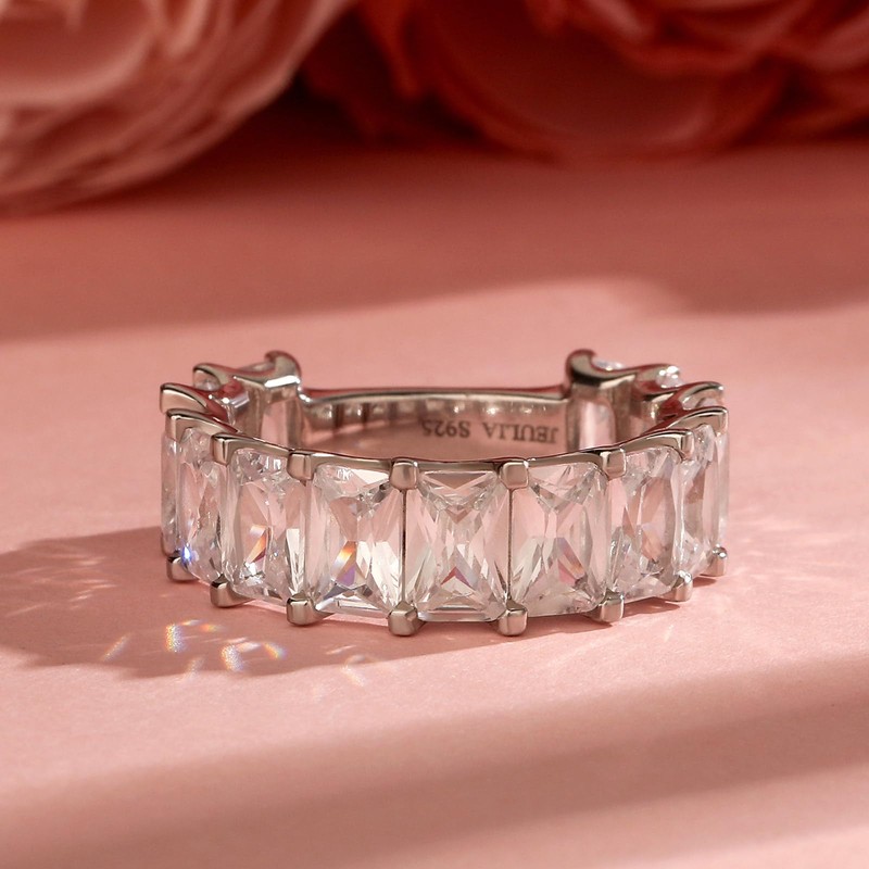 Jeulia Sterling Silver Women's Band: Baguette Cut Cubic Zirconia Promise Engagement Ring Anniversary Eternity Infinity Jewellery for Mom Wife Gift