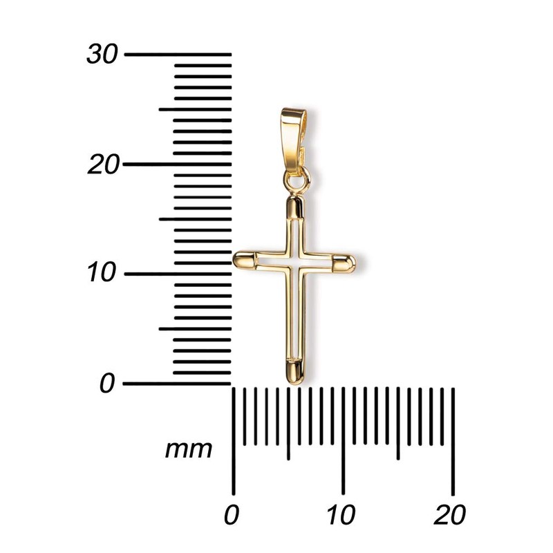 The cross pendant with polished surface in high gloss has the size: height 30.7 mm x width 16.4 mm x material thickness: 1.5 mm.