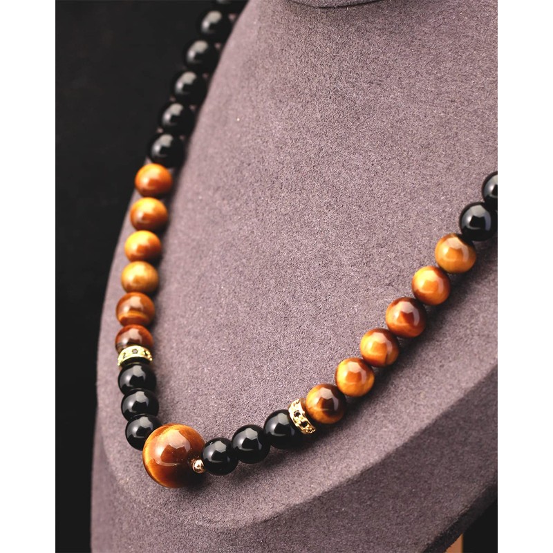 - ★Material: natural high quality tiger eye beads with great texture and wonderful tiger eye effect,black obsidian beads; Plated 14k gold inlay black cubic zircon: not easy fading,solid durable rope,perfect quality for you and the one you love, unisex crystal necklace is a good gift for her/him;