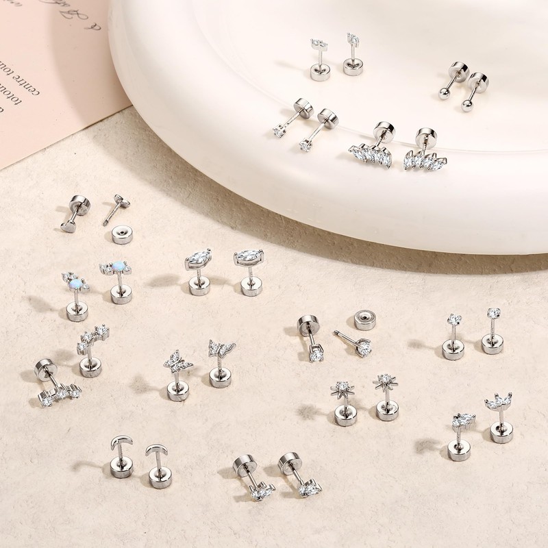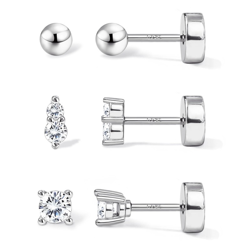 - Hypoallergenic Stud Earrings Set: Earrings Stack Are Made Of Premium 925 Sterling Silver Post With Sparkling 5A+Cubic Zirconia, Highly Polished, Durable, Smooth Surface, Lead-Free, Nickel-Free. Upgraded Flat Back Stud Earrings Design Ensures Comfort For All-Day Wear That Won't Poke Skin Or Hook Hair While Sleeping. With An Internally Threaded Screw-Back Design, The Earrings Stay Securely In Place, Offering a Perfect Combination Of Elegance And Comfort