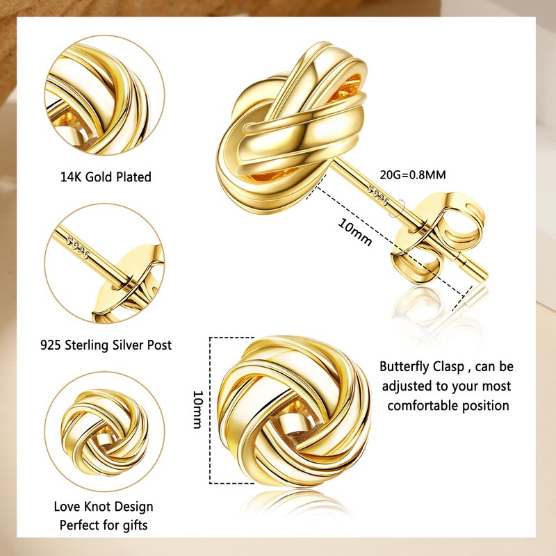 - High Quality Material: Love Knot Earrings Are Made Of 925 Sterling Silver Post And 14K Gold Plated To Ensure Long-Lasting Color Retention. Highly Polished, Durable, Smooth Surface, Nickel-Free, Lead-Free, Hypoallergenic, Especially Suitable For Sensitive Ears