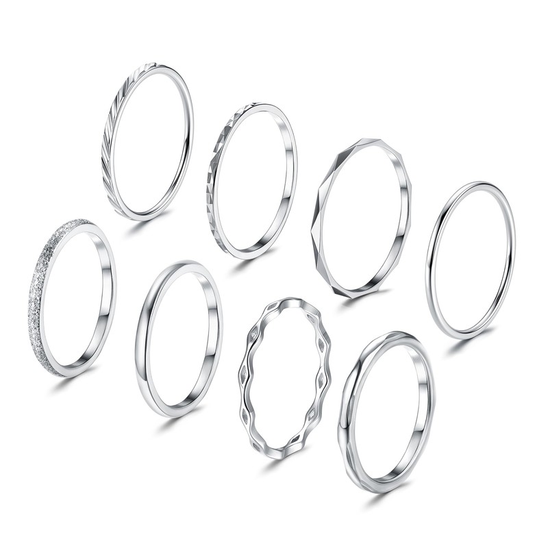 - Silver rings for women: you will receive 8 pieces of 1 mm minimalist thin rings: minimalist simple rings, unique pattern rings, twist rings, wave rings, cord ring and more. It can be used as stacking rings, thumb rings, toe rings, ankle rings and more. Affordable ring set is suitable for most women. Retro look makes you more fashionable.