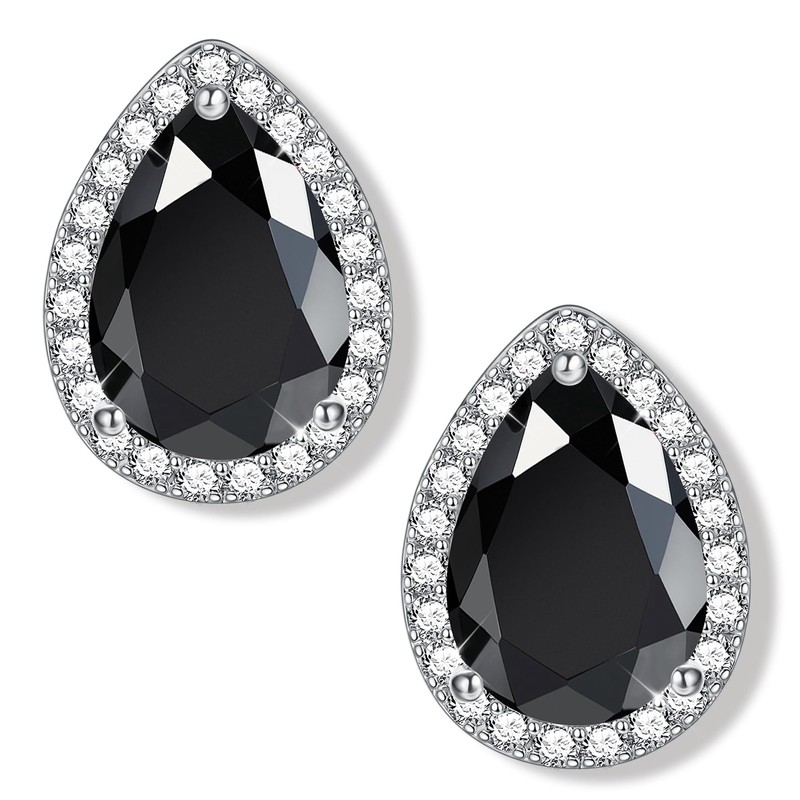 JeweBella Silver Stud Earrings for Women Hypoallergenic Silver Earrings Women White Pink Blue Green Black Cubic Zirconia Birthstone Earrings Water Drops Brilliant Simulated Diamond Stud Earrings