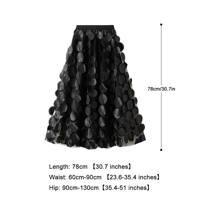Jewefish Summer Punk Style 3D Polka Dot Elastic Waist Tulle A Line Women Skirt, Black, 24 Long