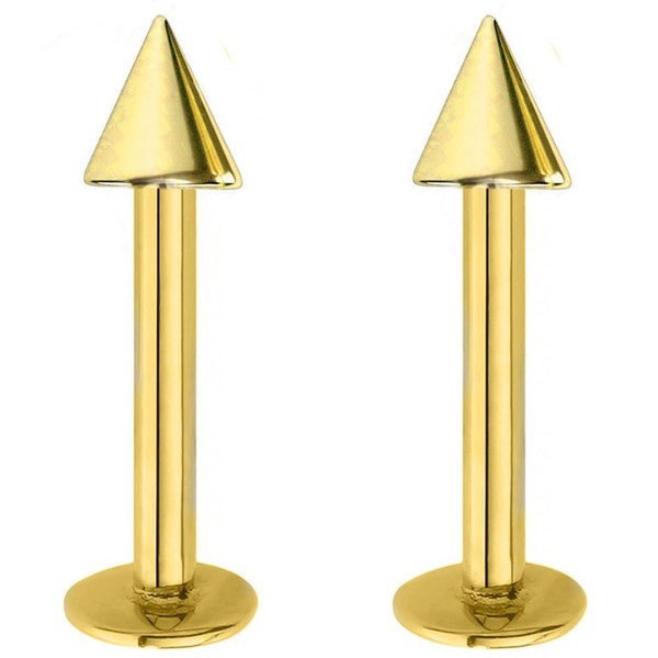 Jewel Barrel 2pcs Labret Piercing Studs Lip Jewellery Bars Monroe Helix Tragus Medusa Ring 6mm 8mm 10mm 12mm Length with 3mm Cones Pair (Gold, 6)