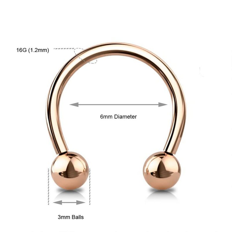 Jewel Barrel Horseshoe Piercing Barbell Circular Bar Septum Nose Ear Ring Hoop Surgical Steel Helix Tragus Jewellery 16G 6mm 8mm 10mm (Rose Gold, 8)