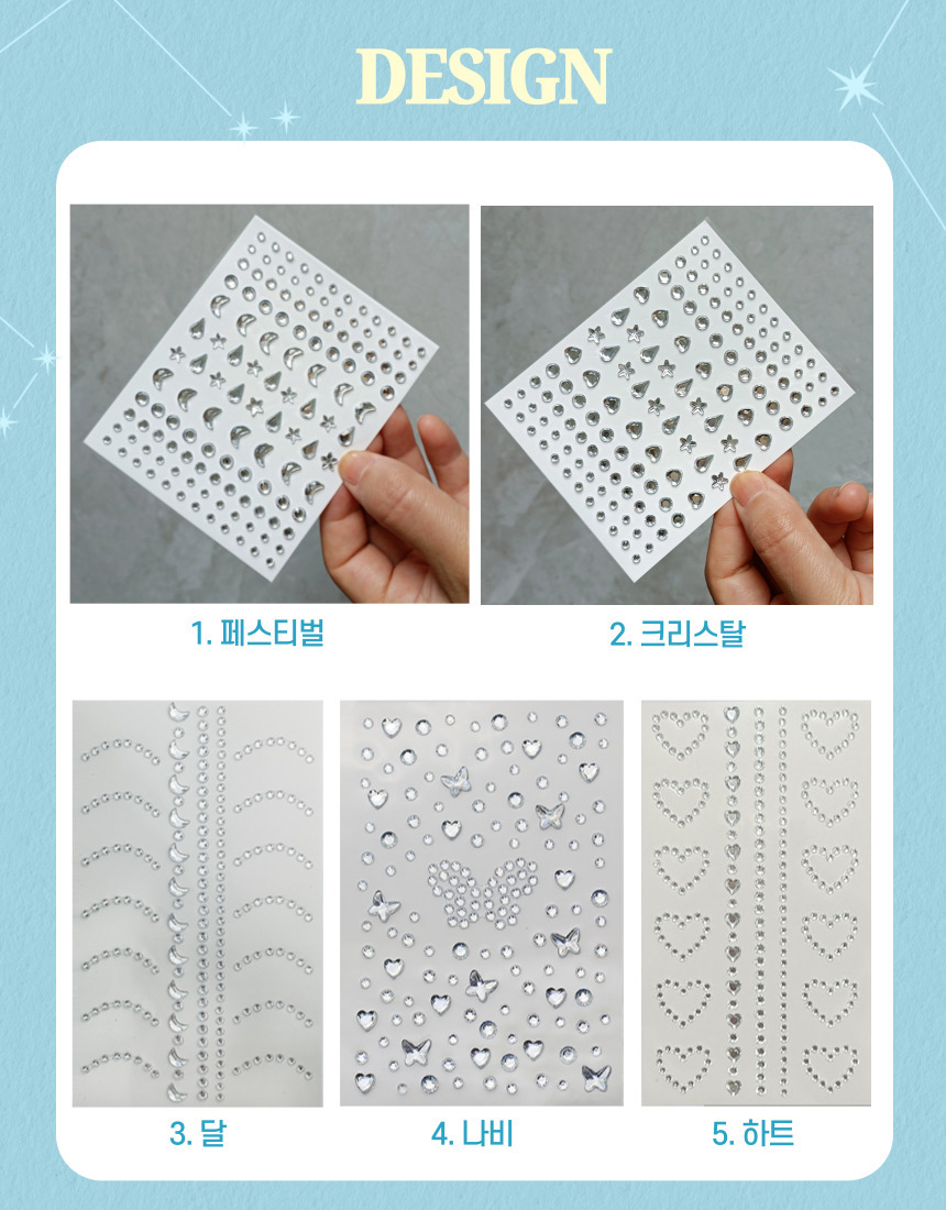 Jewel Cubic Bead Face Stickers: Heart Glitter Makeup 3. Moon 3ea