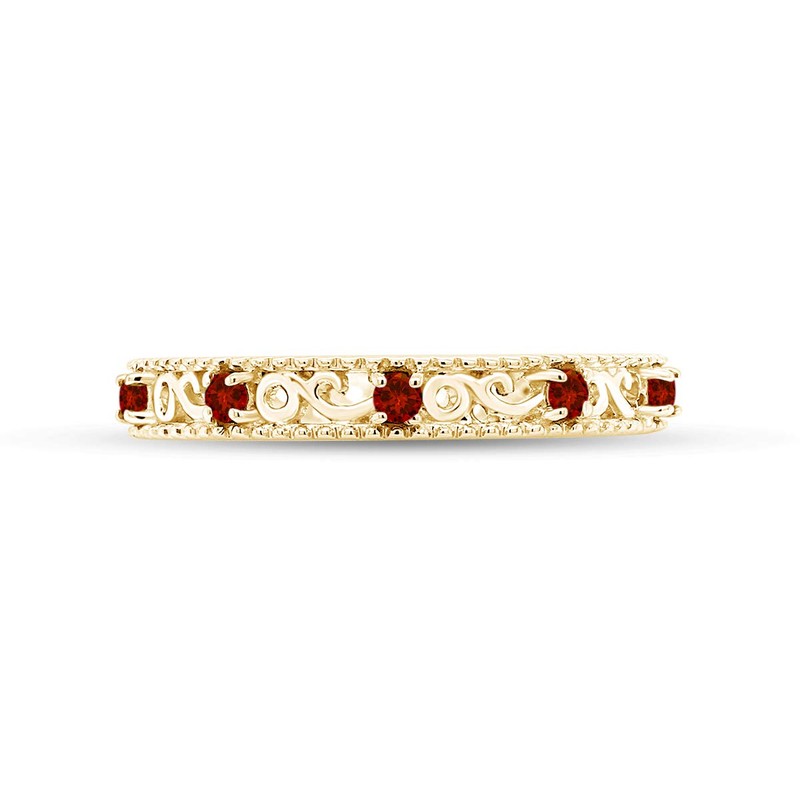 Jewel Zone US Round Cut Simulated Red Garnet 3.25 MM Stackable Ring in 14K Ye...