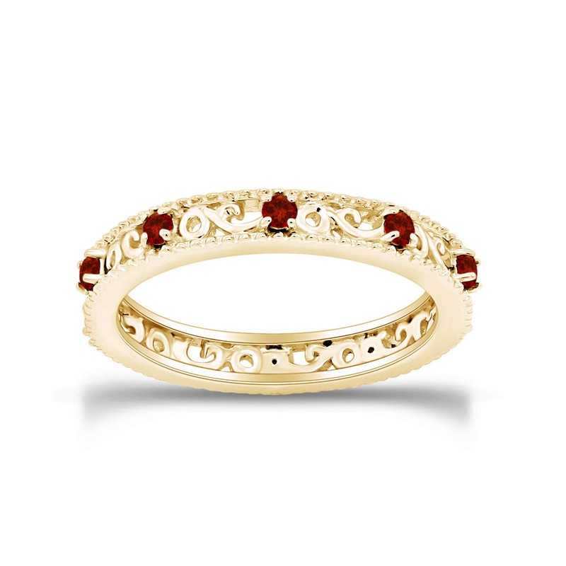 Jewel Zone US Round Cut Simulated Red Garnet 3.25 MM Stackable Ring in 14K Yellow Gold Over Sterling Silver