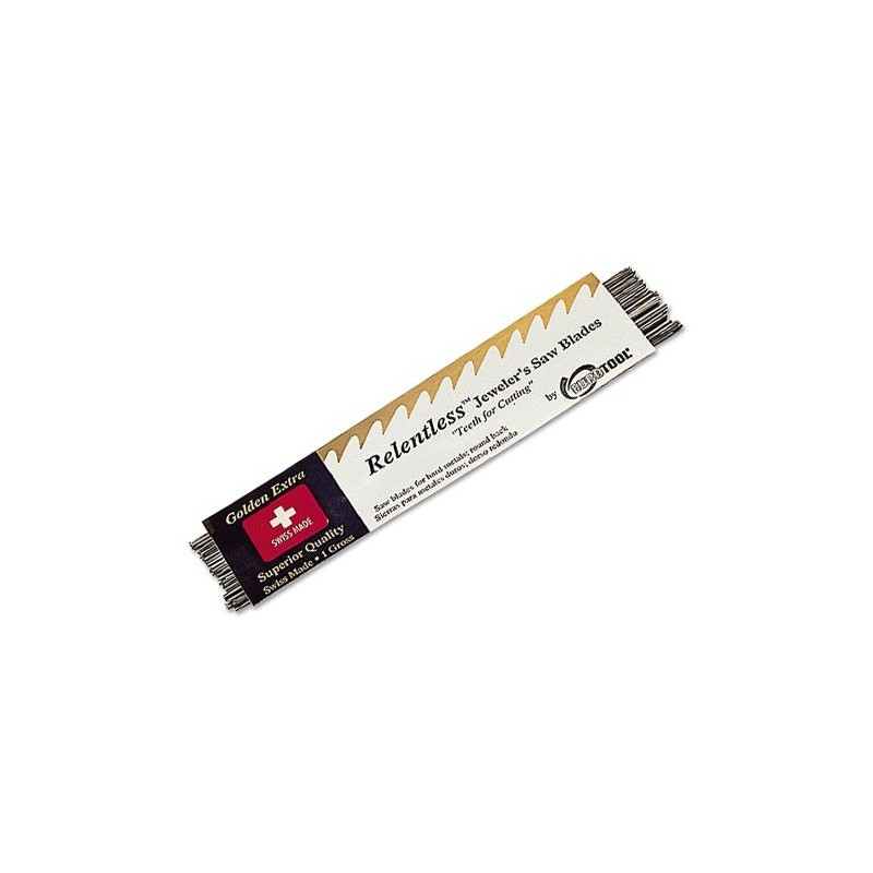 Relentless Saw Blades are manufactured in Switzerland from the highest quality steel. Electronically tempered to be more flexible than other brands, Relentless Saw Blades feature perfectly angled teeth for straight, uniform cuts every time. Long lasting and fast cutting, Relentless guarantees quality in every blade. Use this #3 size blade when cutting heavy wire or cutting out rough patterns in sheet. Cutting edge: #3 Blade Thickness: .74mm Teeth Per Inch: 40