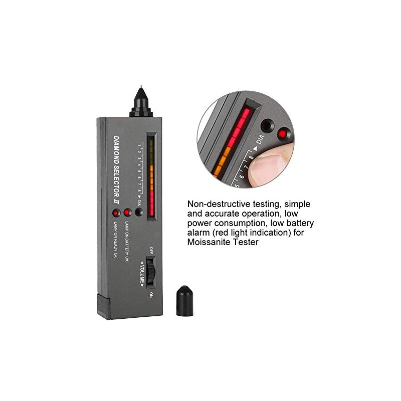 - 【Easy to Use】Green indicator will be showed on Diamond Selector II if the stone is a real diamond. It will make continuous buzzing sound when user accidentally touches metal rather than stone.