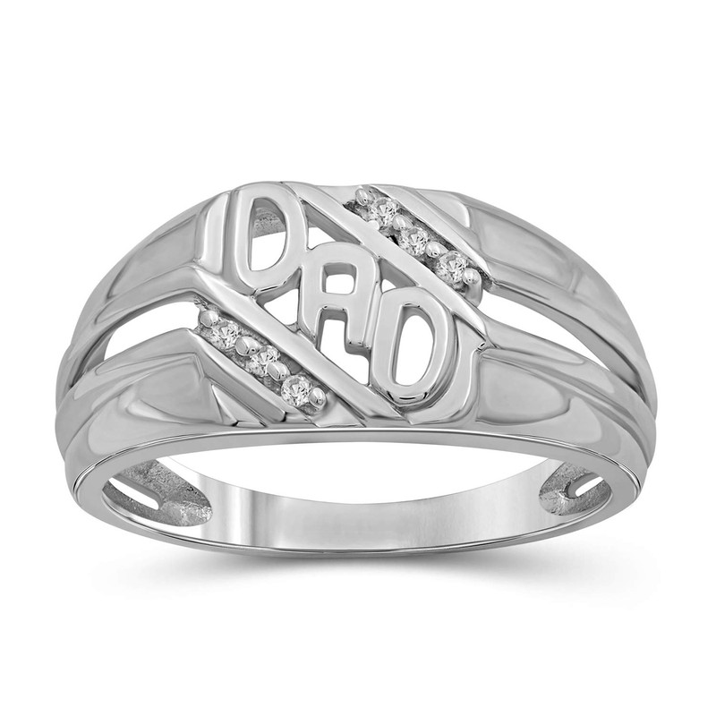 • Your dad deserves a handsome, beautifully crafted silver mens ring – not mens rings sold by other brands that turn out to be low-quality, breaking after only a couple of months. The JewelExcess Diamond Accent Dad Ring is forged out of .925 Sterling Silver with 1/20-carat authentic White Diamond accents, for a strong, durable mens silver ring Dad will love to wear and show off for years to come.