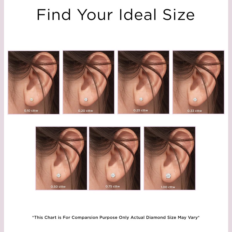 - Classic four-prong stud earrings in platinum-plated sterling silver, set with round-cut lab-grown diamonds (0.25 CTW, G-H color, SI clarity), secured with push-back posts.