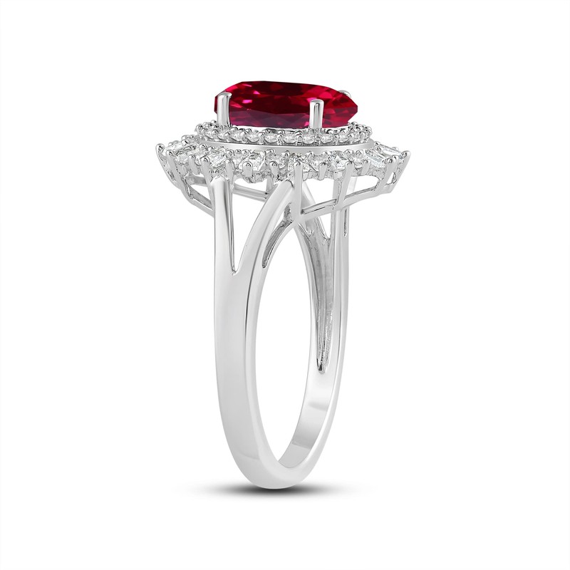 Jewelili Sterling Silver 9x7 MM Oval Created Ruby with Baguette and Round Cre...