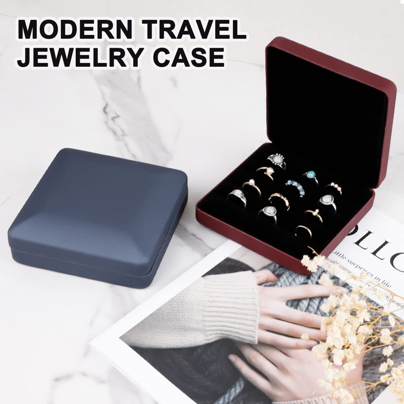 Jewellery Ring Organiser Box, Small Jewellery Box, Travel Jewellery Case, Portable Ring Memory Display Case, PU Leather Rings Tray Holder Box for Women, Men, Girls, Earring, Cufflink (Red)