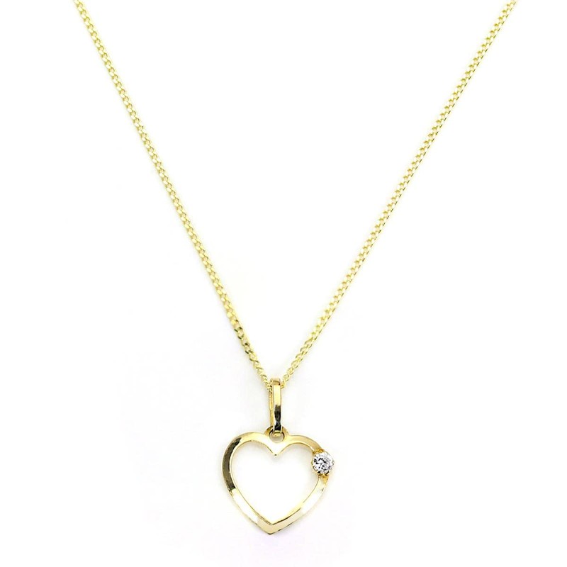 jewellerybox 9ct Gold Light Open Heart with CZ Crystal Pendant - No chain