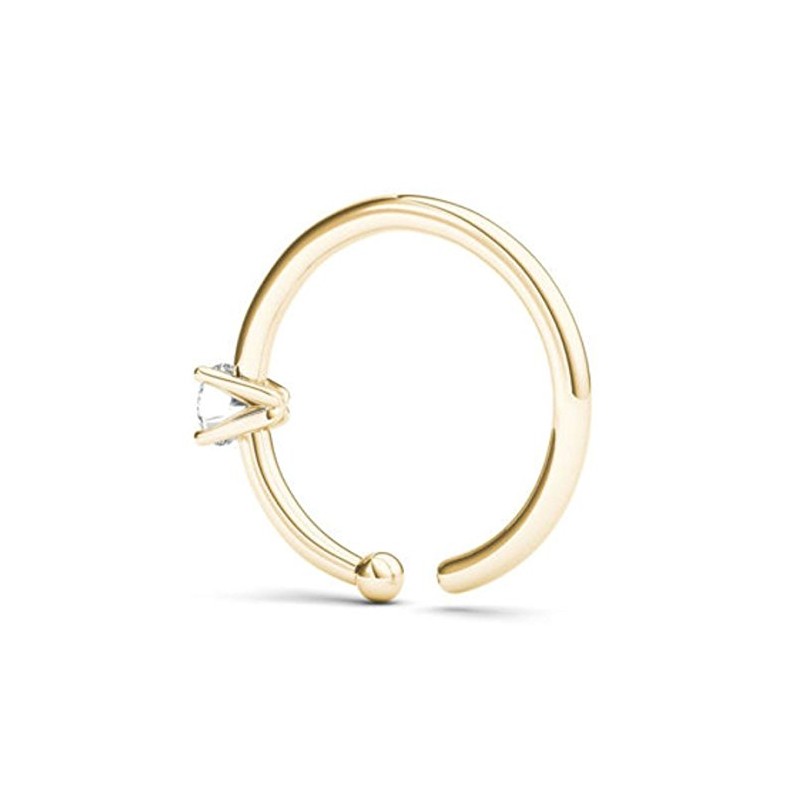 JewelMore 0.02ct Diamond Nose Ring Hoop - 14K White Gold or Yellow Gold (Yellow Gold)