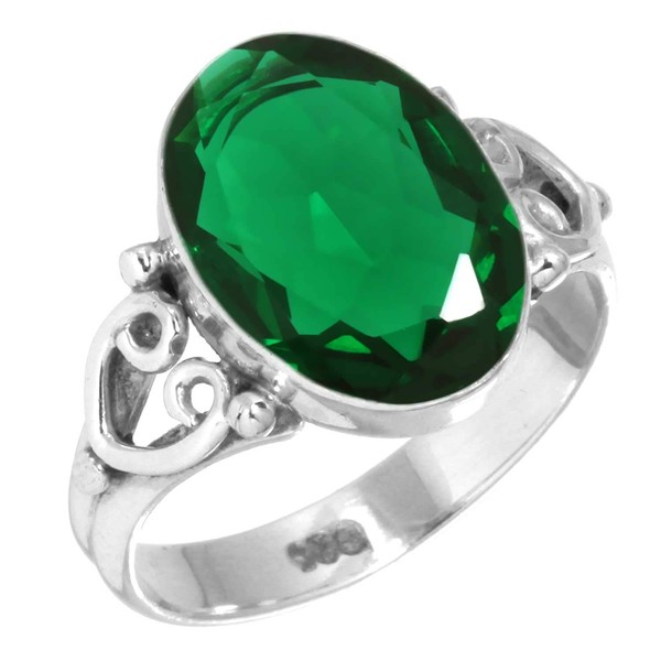 - Gemstone - Good Quality Emerald Simulated Gemstone Oval 10x14 MM. This Green silver ring is for traditional May Birthstone.