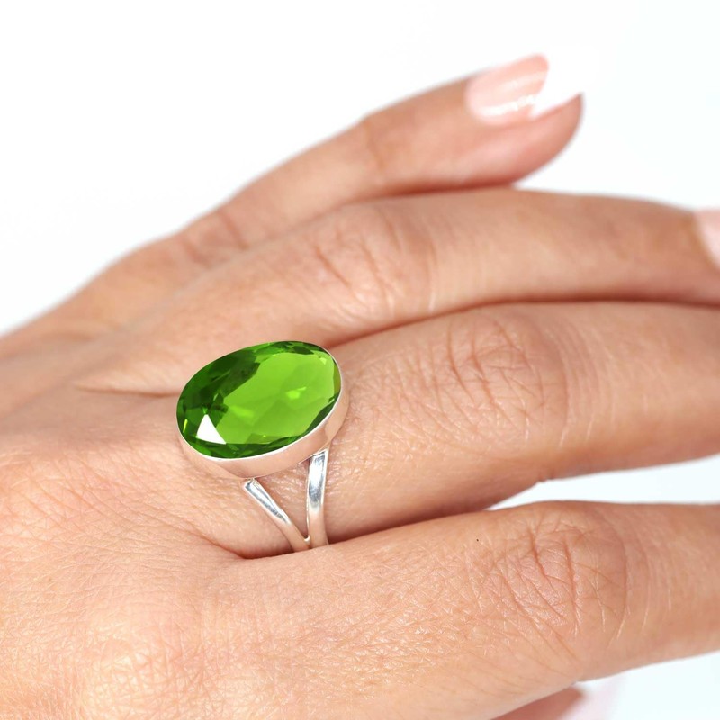 - Gemstone - Good Quality Peridot Quartz Gemstone Oval 12x16 MM. This Green silver ring is for traditional August Birthstone.
