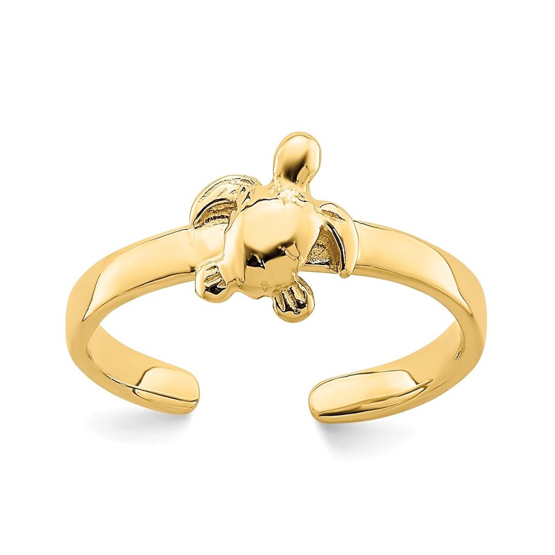 Jewelry Affairs 14k Real Solid Yellow Gold Adjustable Sea Turtle Toe Ring