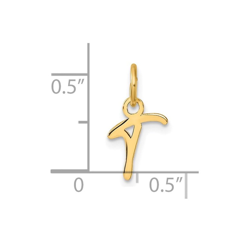 Jewelry Affairs 14K Yellow Gold Script Alphabet Initial Letter Charm Pendant, 14mm (Letter T)