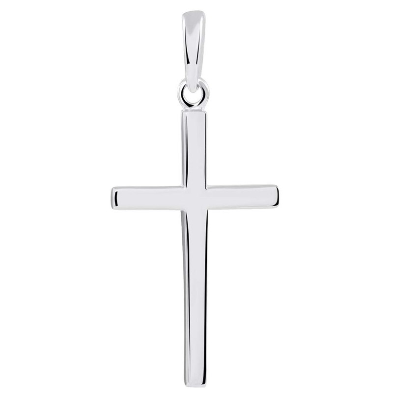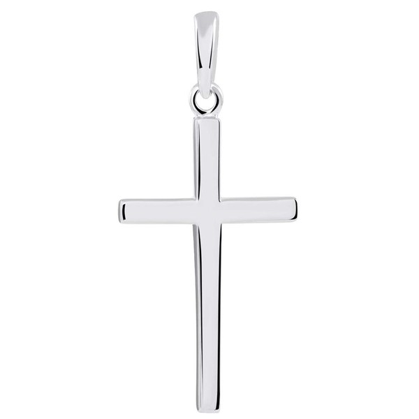 Jewelry America 14k Solid White Gold Classic Plain Religious Cross Pendant, White Gold