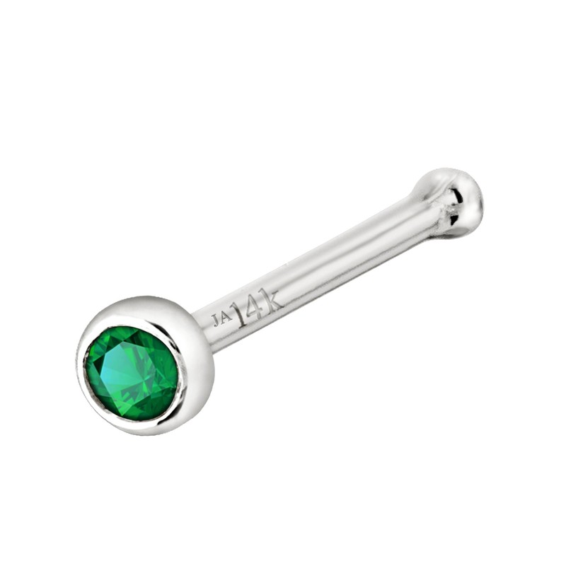 Jewelry Avalanche Solid 14K Gold Ball-end Stud Bezel Set Emerald 22G Nose Bone Nose Stud - 14K White Gold / 14K Yellow Gold May Birthstone Nose Ring Stud, Metal, emerald
