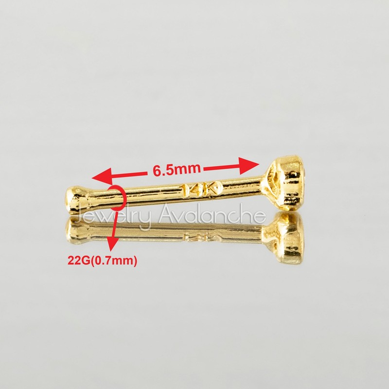 - Made with solid 14K Gold. Gauge: 22G (0.7 mm); Wearable post length: 6.5mm