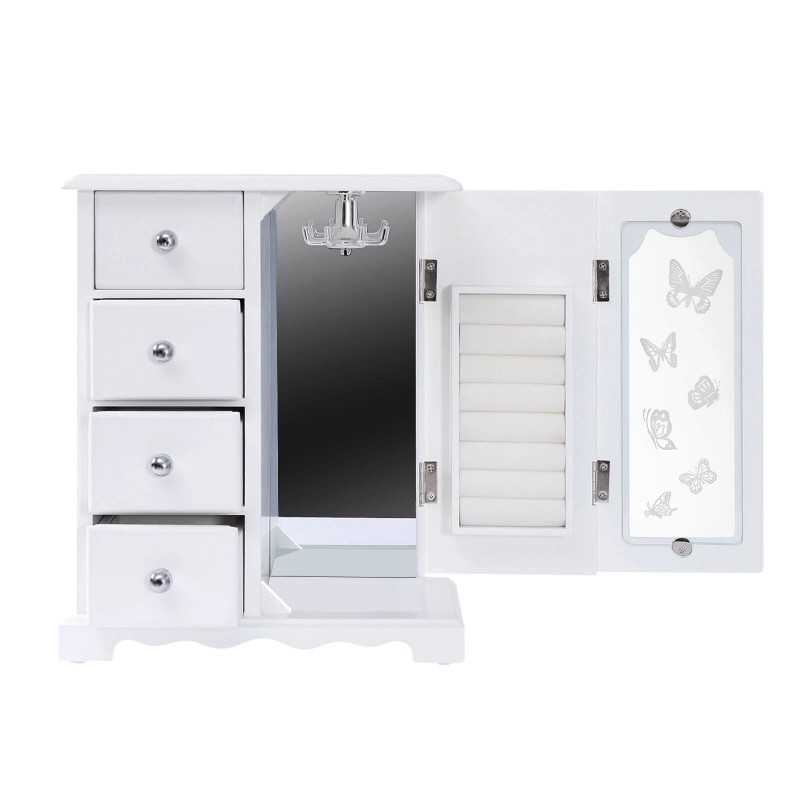 Jewelry Box Organizer Case Wooden with 4 Drawers Gift for Girls or Women White