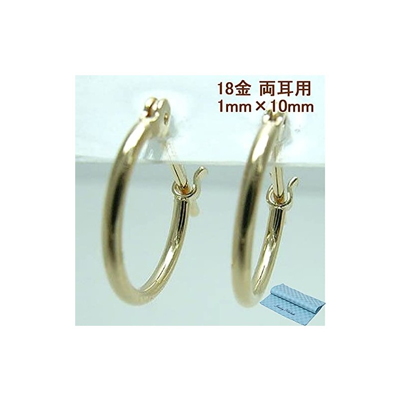 Jewelry Kotobuki Hoop Earrings, Pipe Size 0.04 x 0.4 inches (1 x 10 mm), Hoop 18K Gold, For Both Ears (Earrings and Polishing Cloth Set of 2), 18K Gold, No Gemstone