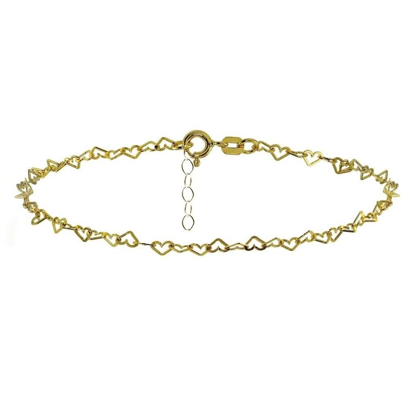Jewelry Necklaces, Bracelets, Chains and more - Yellow Gold Flashed Sterling Silver Open Heart Link Chain Anklet - XFBX10620