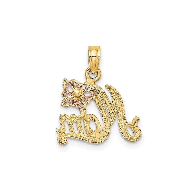 Jewelry Stores Network 10k Two-Tone Gold Mom Pendant Rose Butterfly Script Charm for Women Jewelry
