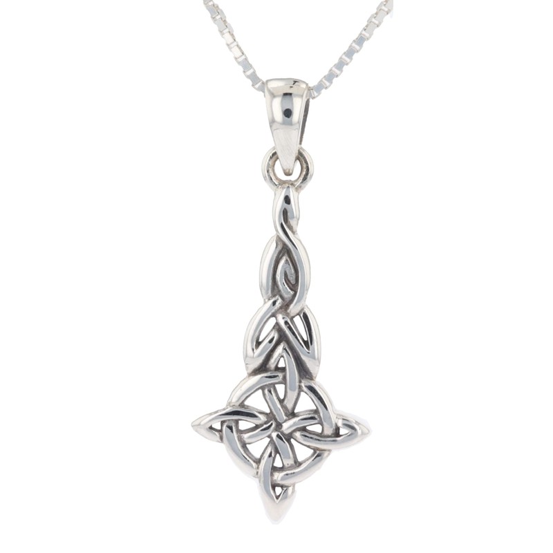 Jewelry Trends Sterling Silver Celtic Good Luck Quaternary Knot Pendant on 18 Inch Box Chain Necklace