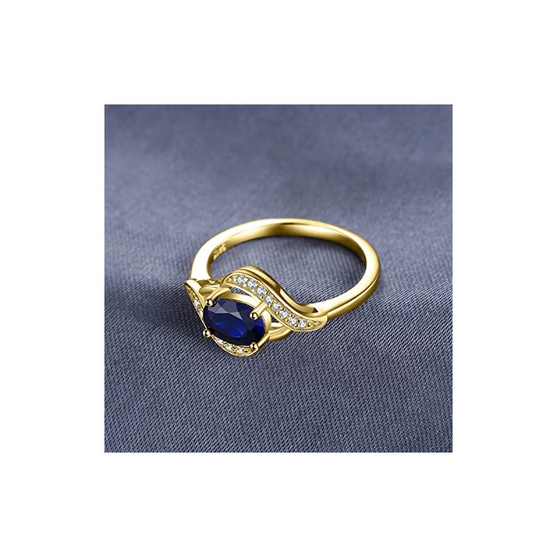 JewelryPalace 1ct Oval Created Blue Sapphire Rings for Women, 14K Yellow Gold Plated 925 Sterling Silver Ring for Girl, Gemstone Jewelry Sets Promise Rings 9.5
