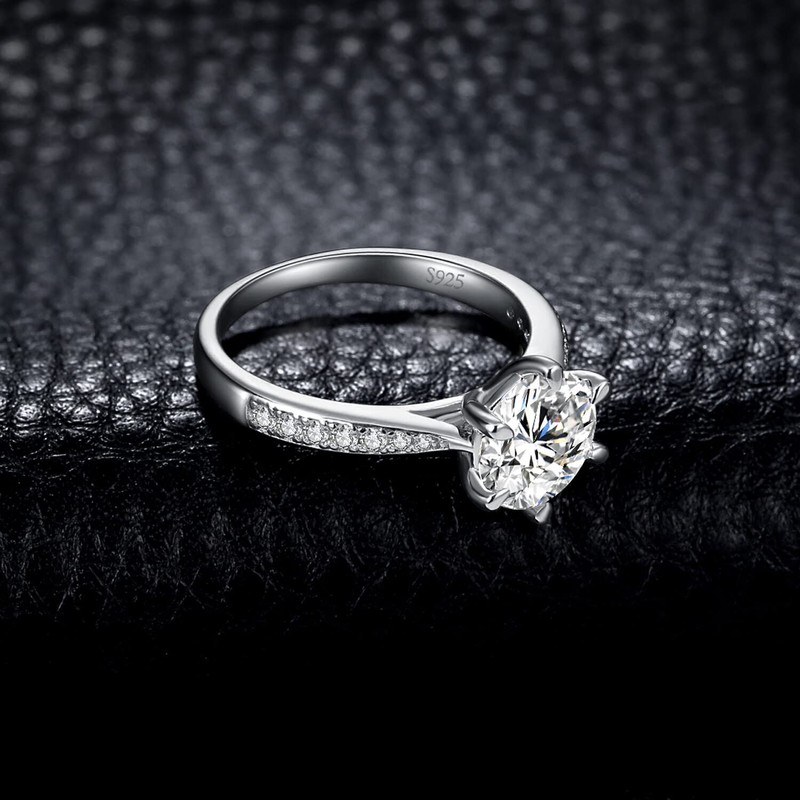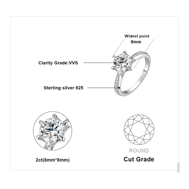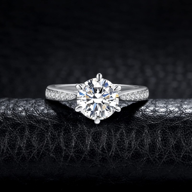- √HIGH-QUALITY 2 CT Moissanite 925 STERLING SILVER RING : Our classic 2 carat solitaire promise ring for women is made of solid S925 sterling silver. Sterling silver in our women engagement ring is tarnish-resistant ensuring there is no tarnish residue on the skin. Rhodium plating provides a long-lasting luster and makes anillos de plata 925 women tarnish resistant! Completely hypoallergenic allergy-free nickel-free lead-free and cadmium free to prevent irritation.