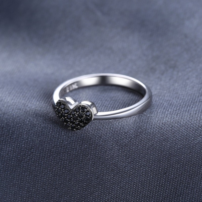 - √ FASHIONABLE RING WITH GEMSTONE HEART: This silver ring with heart has a beautiful design made from natural black precious spinels that give it a prestigious finish. The silver jewellery ring promises great love and is set with small, well-designed black stones. Surprise your partner in the festive season, Valentine's Day or special moments with this elegant women's ring as a gift to sign your love