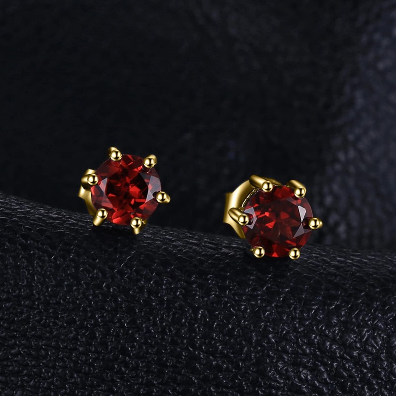 JewelryPalace Round 1.3ct Natural Red Garnet Stud Earrings for Women, 925 Sterling Silver 14k Yellow Gold Plated Stud Earrings for Her, Genuine Gemstone Jewelry Gift for Women