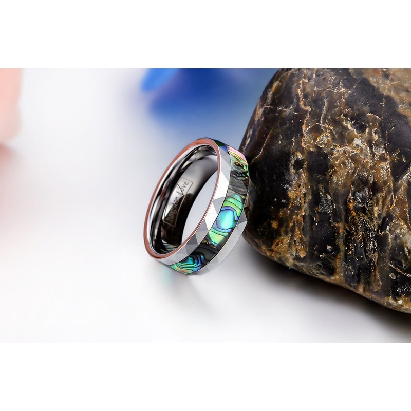 JewelryWe 8mm Abalone Shell Inlay Mens Multi-Faceted Tungsten Carbide Wedding Engagement Band Ring- Comes in Gift Bag - (Available in Most Sizes): UK Size - R
