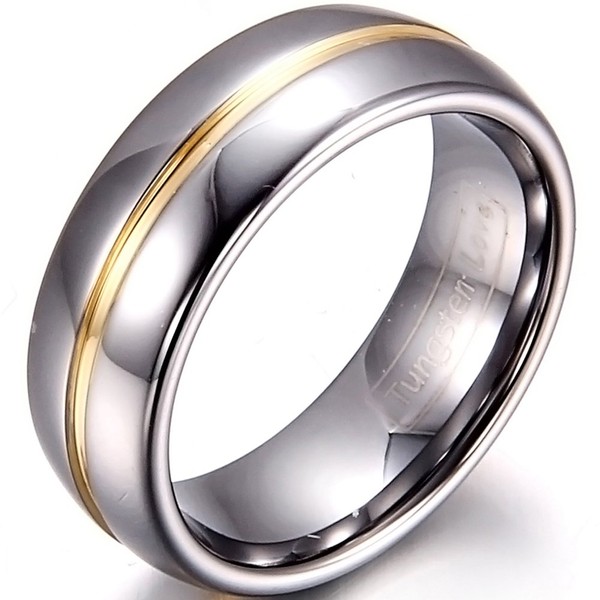 - 8mm Two Tone Mens Gold Groove Inset Tungsten Carbide Rings Anniversary/engagement/wedding Bands