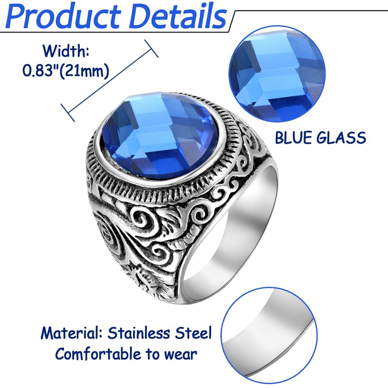 JewelryWe Jewellery Men’s Ring Classic Retro Charm Carved Stainless Steel Glass Blue / Silver, Stainless Steel