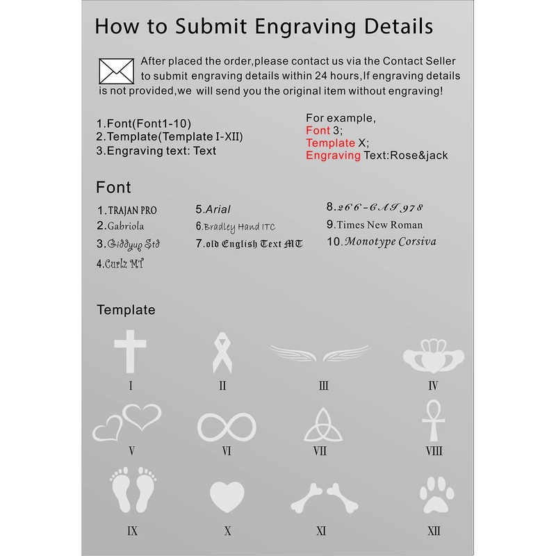 ♥ Send your request engraving via Amazon immediately after purchase. If we have not received your engraving information within 24 hours, we will publish your order without engraving.