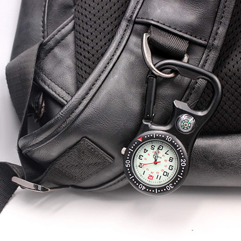 JewelryWe Men Women Clip-on Quarzt Watch Backpack Fob Belt Watch Glow in The Dark Pocket Watch for Rock Climbing Doctors Nurses Outdoor Activities
